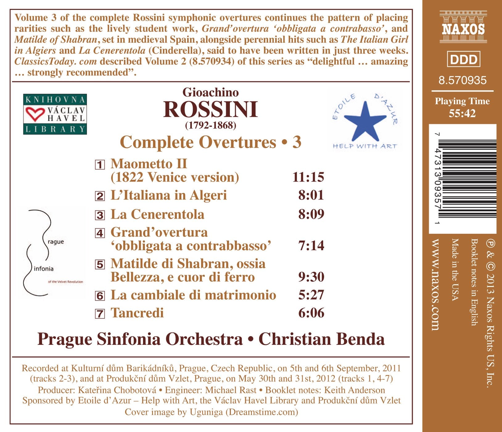 The best aspect I like about Naxos’ set of Rossini overture with Christian Benda and his Prague players is the upfront sonic placement of the orchestra. Even if Benda doesn’t choose the most manically-paced tempos, being at the arm of the conductor as a listener is exciting, and differentiates it from other recordings.