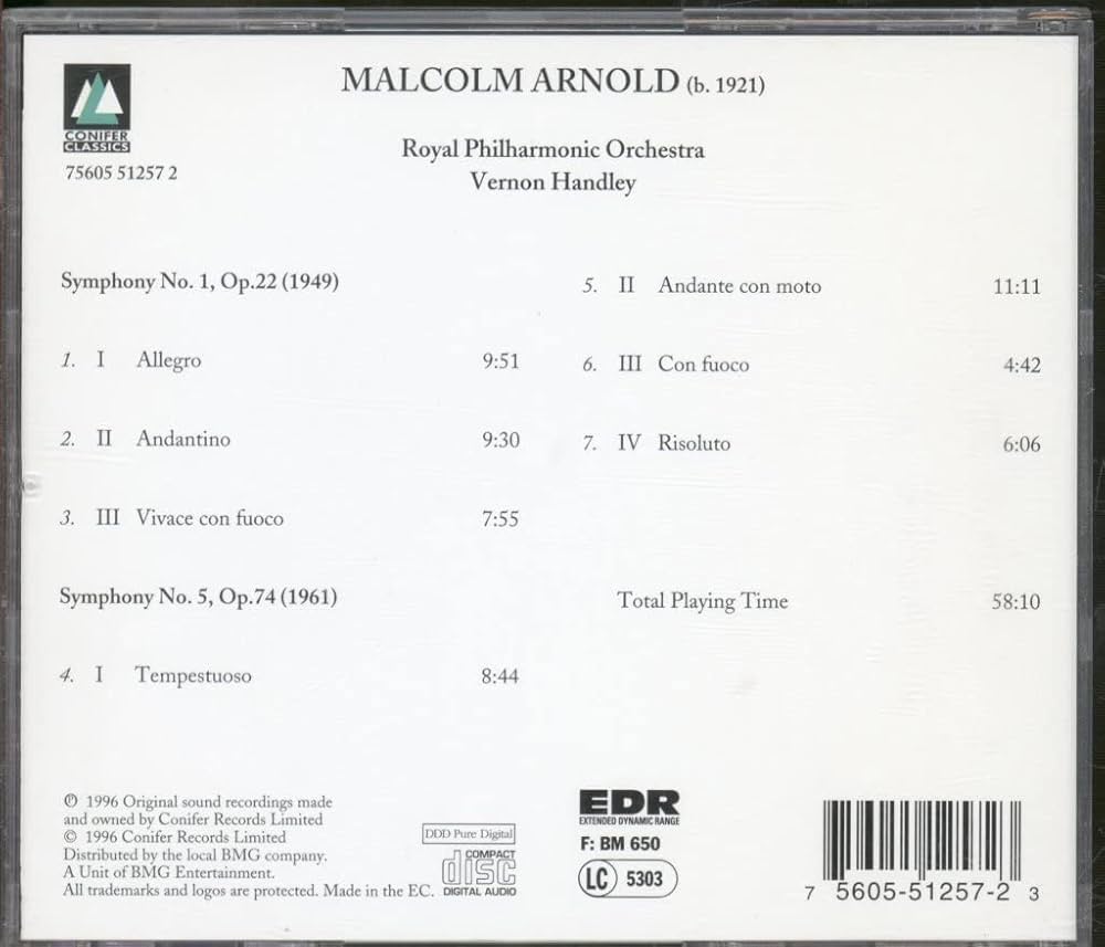 Malcolm Arnold's Symphony no. 5 is one of the composer's more popular in the genre. Strange too, as I don't find it to be his 'easiest' symphony.