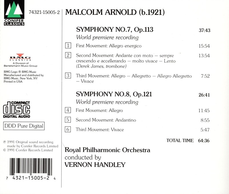 How often does one sit down and revisit Schindler's List? Not I, thus I think I will be more apt to visit Symphonies 4 & 8 from Arnold compared to the emotionally tougher Symphonies 3 & 7. I can't call them works I enjoy less, however, I really have to be in a very certain state of mind to even appreciate some of Arnold's works in a listening session. I suppose, that is what makes them timeless artistic pieces of art which evoke humanity in all of its forms.