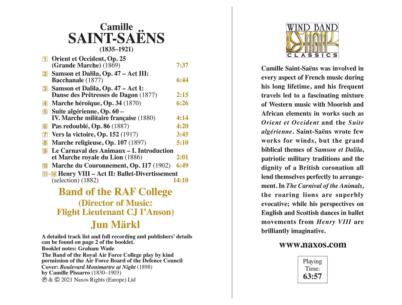 What a strange release from Naxos and Jun Märkl. Granted, Naxos gets to add to its Wind Band Classics Series and Märkl adds another recording to his own Saint-Saëns series on Naxos. Yet, none of these wind ensemble pieces were actually arranged by the composer himself. Instead, other hands converted orchestral pieces into music for Concert Band, and Jun Märkl, an orchestral conductor, leads the proceedings.